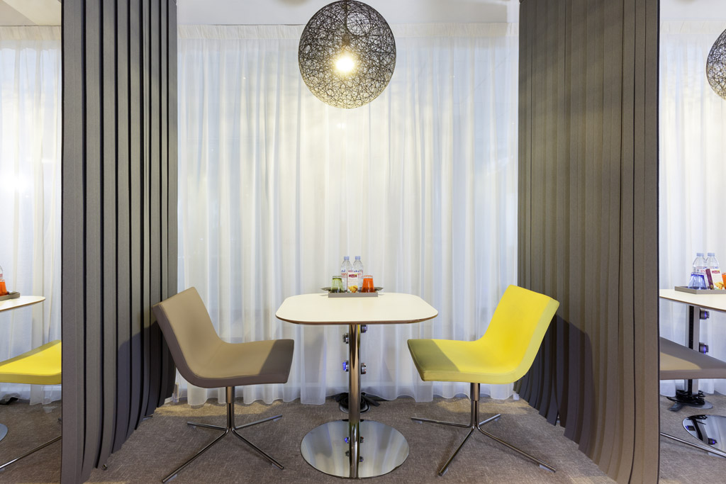 Chaque jour des milliers de travailleurs nomades utilisent les bars et espaces lounge d’hôtels en France pour travailler entre deux rendez-vous ou effectuer un entretien ou une présentation et ce pendant quelques minutes ou quelques heures. Intégrer dans les hôtels un espace de travail dédié, réservable sur smartphone, design, connecté et accessible à tous semblait évident et pourtant ça n’existait pas ? Mercure, un des leaders mondiaux de l’hôtellerie avec plus de 700 hôtels, a fait le pari en 2012 de proposer une offre inédite de services et d’espaces de travail dédiée aux nomades; cette offre s’intégrant dans le nouveau concept hôtelier dans lequel les lobbies et les bars sont entièrement repensés, le desk traditionnel disparaît, l’offre de restauration s’ancre dans le local et le bio et les chambres deviennent épurées et connectées.